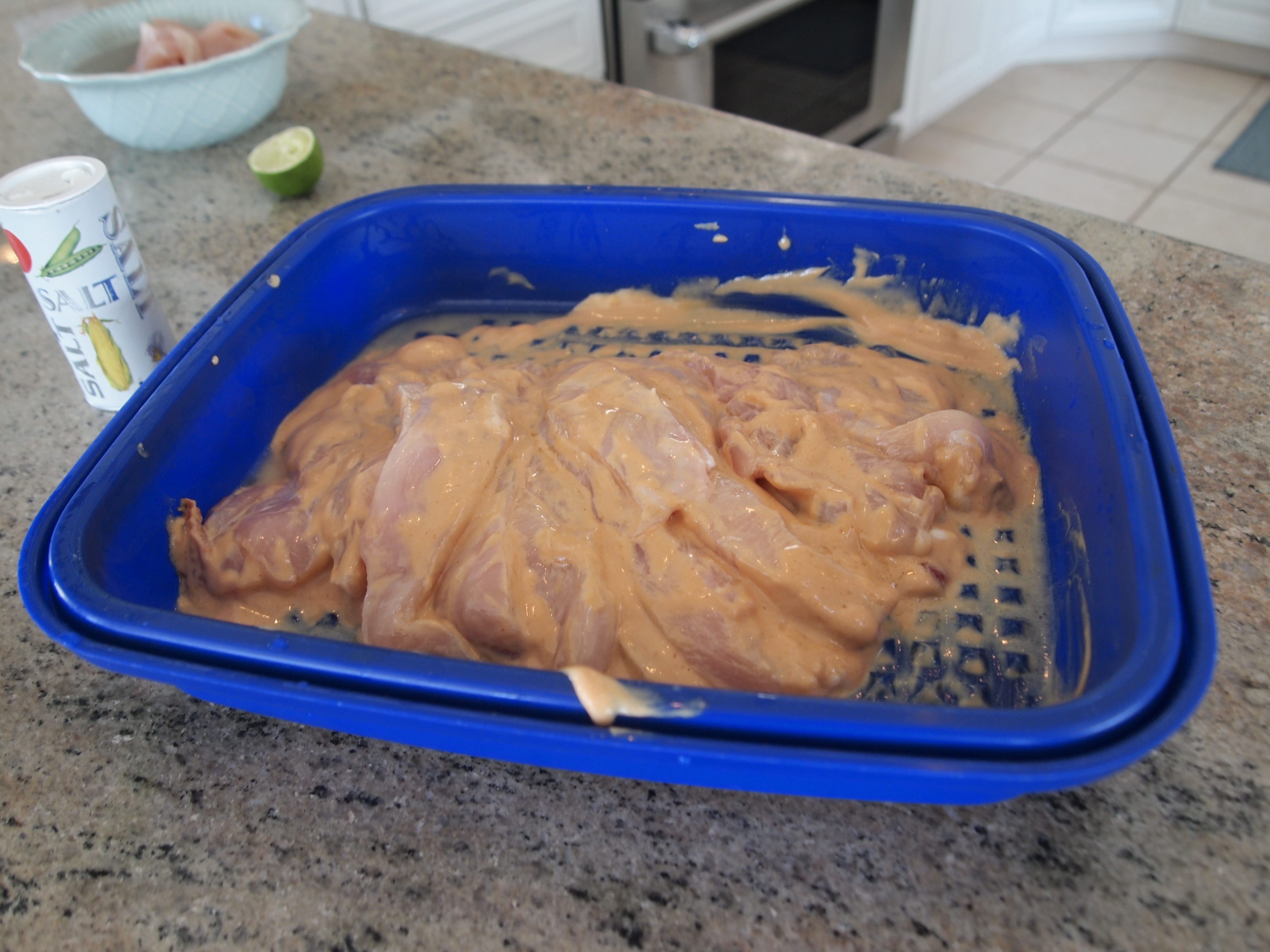 Combine the remaining ingredients in a low flat dish. Whisk until combined. Add chicken and coat with marinade. Cover and refrigerate for up to 2 hours.